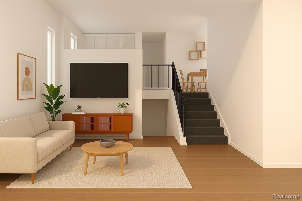 OPEN HOUSE SATURDAY 6/21 1-4pm. Come view our latest new construction product, a BRAND NEW 2 bedroom 2 bathroom first floor unit with additional basement/flex room and in unit storage space. These homes feature dramatic 2 story living rooms, tons of windows, upgraded kitchen and dining room, and walk in bedroom closets. Walk into your new home from the tree lined courtyard and be greeted by a dramatic living room with 13' ceilings. Up a half flight of stairs to find the upgraded kitchen and dining room. The kitchen has all stainless steel appliances, granite counters, and custom white cabinetry. The bedrooms both feature walk in closets and the primary bedroom has a private attached bathroom. The unit includes a one car attached garage, garage entrance foyer, laundry room, AND BASEMENT! The basement provides over 200 sq ft of finished usable space, perfect for a third bedroom, office, gym, or playroom. There is also a large storage area in the basement to give you even more usable space. The community is incredible and includes a pool, hot-tub, sand volleyball court, large fishing dock on Walled Lake, and key card access to all amenities! The community features raised boardwalks, fountain lined sidewalks, and cedar gazebos sprinkled along the walkways. 4 remaining units! Reach out today to ask about our custom finishes and additional units available. ALL PICTURES ARE RENDERINGS OF UNITS TO BE COMPLETED, finishes may be different than those in the images. Price reflects base price with additional builder finishes already selected and INCLUDED. Additional selections and custom finishes may be selected and added to list price. Current price reflects tons of included upgrades including granite, upgraded flooring, kitchen appliances, and more! Reach out for details!