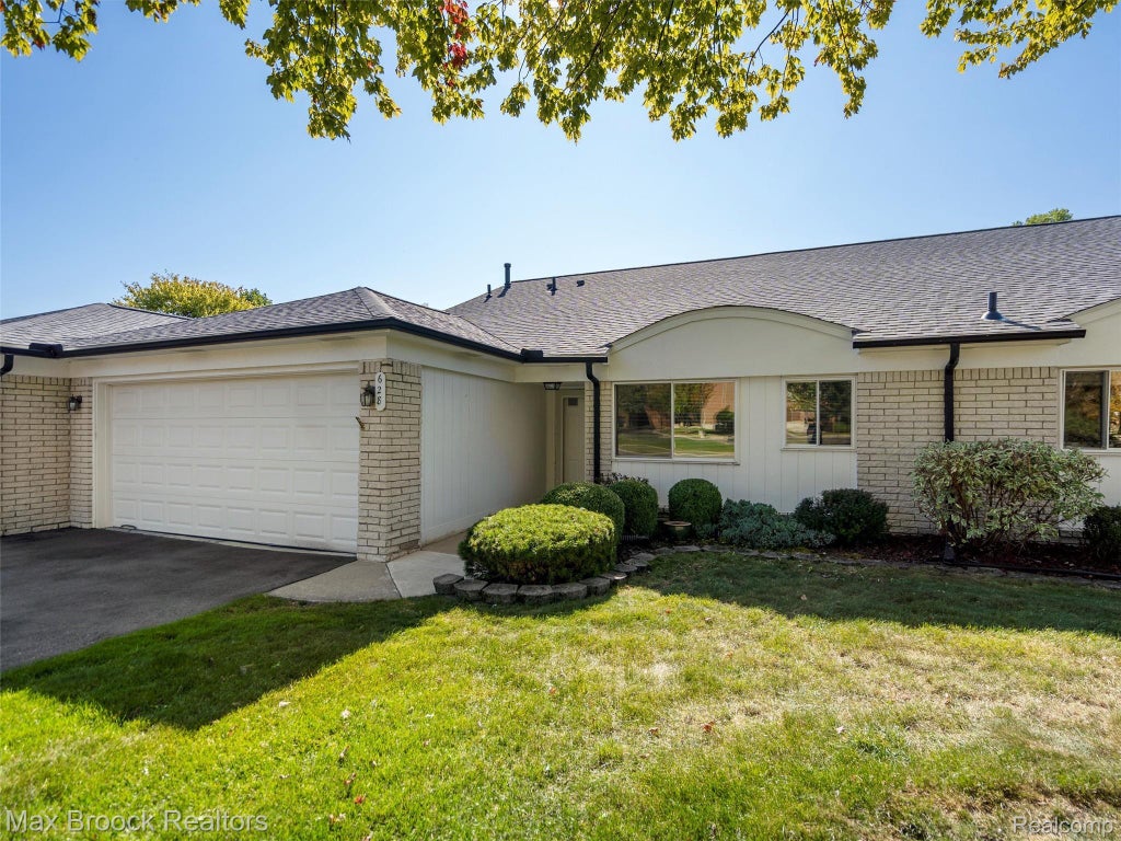 Explore this charming Ranch Condo located in the sought after Golf View Condos within a wonderful golf course community. This meticulously maintained unit features an inviting open living room with a door wall leading to a cement patio, complemented by newer vinyl flooring and fresh paint throughout. The dining area has a lovely window that provides a view of the front yard. The updated kitchen boasts granite countertops and includes all essential appliances such as a stove, refrigerator, dishwasher, and microwave. Convenience is key with first floor laundry that includes extra cabinets and granite counters, along with a washer and dryer. The primary bedroom benefits from a generous window overlooking the backyard, a spacious walk-in closet, and a ceiling fan with remote. The second bedroom also offers a window and a ceiling fan. Enjoy granite countertops in both the full and half baths. Additional features include a newer furnace and an attached two car garage. The monthly maintenance fee covers snow removal, water, sewer, trash pickup, and exterior maintenance. Don't miss the opportunity to stroll to the gazebo and pond! One Dog or one cat are allowed. See Handbook for more details.