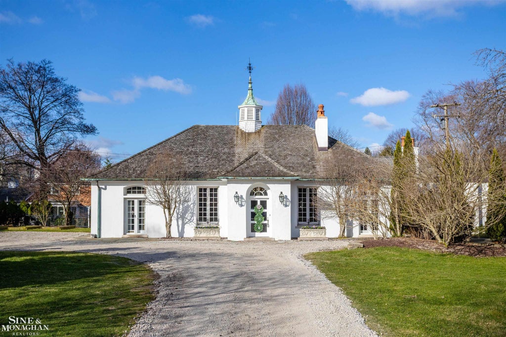 29 Fisher Road in Grosse Pointe, Michigan, is a distinctive French Country residence steeped in rich history. Constructed in 1931, this unique home was originally designed as stables on the expansive estate of Matilda Dodge, a prominent figure in the early 20th century. Renowned architectural firm Smith, Hinchman & Grylls transformed the building into a private residence, resulting in a charming abode that retains its historical character. The property offers 3,820 square feet of living space, featuring four bedrooms and three and a half bathrooms. The first floor boasts a spacious great room with 10-foot ceilings and a fireplace adorned with Pewabic tile, a hallmark of Michigan craftsmanship. Additional highlights include a large family room, a kitchen equipped with Corian countertops and stainless steel appliances, and a primary suite with a walk in closet and a bathroom featuring a jacuzzi tub and double sinks. A standout feature of this property is the carriage house above the 3.5-car garage, offering a kitchen, living room, bedroom, and full bathroom, providing versatile living space. Situated on a 0.48-acre lot, 29 Fisher Road combines historical significance with modern amenities offering a rare opportunity to own a piece of Grosse Pointe's architectural heritage.