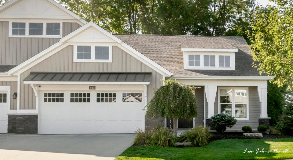 Stunning Byron Center condo now available in the highly sought-after Hidden Ridge Community, built by JTB Homes. This beautifully designed home offers 2 bedrooms, an office, bonus room and 2.5 baths, blending comfort with elevated style. The daylight lower level is perfect for entertaining, featuring a spacious rec room with large windows that flood the space with natural light, an additional bedroom, full bath, bonus room and tons of storage. On the main floor, you'll enjoy zero-step entry, 9' ceilings, guest bath and office (could be turned into another bedroom) including a stunning primary suite with a double vanity, dual shower/tub combo, and expanded closet. The gourmet kitchen is equipped with granite countertops, premium appliances, and a walk-in pantry, all centered around a modern electric fireplace in the living space. Step out from the dining area onto the covered deck and take in serene views -- the perfect spot to relax and unwind. Every detail was thoughtfully designed.