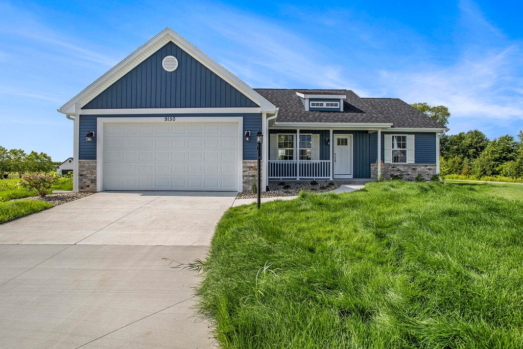 Step into superior new construction by Watts Homes in the sought-after Cottage Pointe community. The York plan offers cathedral ceilings, a sun-filled great room, and a designer kitchen with quartz countertops, island, custom cabinetry, and full appliance suite. The private primary suite features vaulted ceilings, a walk-in closet, and spa-style bath. A second bedroom and full bath sit opposite for privacy. Rear entry has a built-in bench, pantry, and laundry space. The walkout lower level is ready to finish. Includes patio and deck, sprinkling, landscaping, and attached 2-stall garage.