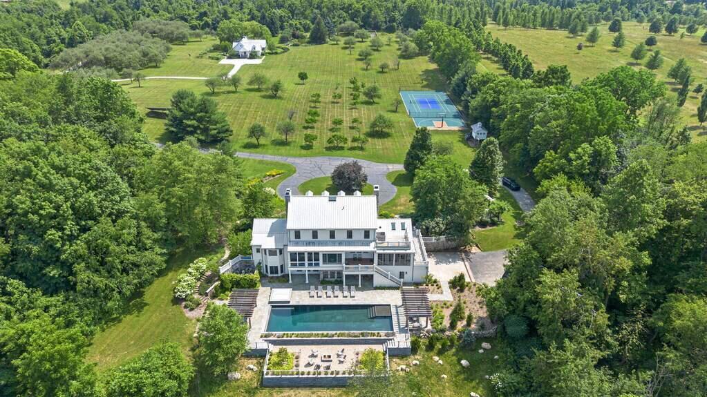 Set on 27 private acres just 75 minutes from Chicago, 10268 N Manna Lane is a fully realized luxury estate with two full residences, resort-style amenities, and Modern Luxury Design 9 award-winning design. Crafted for elevated living and effortless entertaining, the main residence features a award winning design, 4 bedrooms, spa-caliber primary suite, executive office, and a state-of-the-art theater. Outdoors, unwind poolside with a custom built heated pool, sun shelf, hot tub, and custom fire pit. Multiple outdoor lounges, orchards, trails, idyllic pond, and curated landscape design complete the private resort experience. Enjoy smart home integration, radiant heat flooring, and a finished lower level with theater, fitness studio, and walkout to pool. Across the orchard, and just beyond the sports court you'll find a lovely guest home which offers 4 additional bedrooms and a full kitchen--ideal for extended stays, guests, or multigenerational living. Private tours by appointment.offers a sanctuary of its own, featuring four bespoke bedrooms, a fireplace, screened porch, and picturesque pond views. The estate itself is a destination with lush gardens, a thriving fruit orchard, and acres of wooded serenity. Located 70 minutes from Chicago, this is the ultimate private retreat designed for those who have seen it all and expect nothing less than the extraordinary.